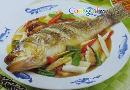 6、待鲈鱼两面煎至呈金黄色,捞起,沥干油分备用。