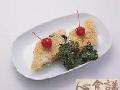4.我们将羊肉逆纹切薄片后放入一容器中,加入酱油、香油、2大匙米酒、1/4小匙的小苏打粉和太白粉拌匀略腌备用