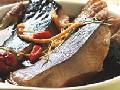 做法: 将竹签从虾腹处插入,放入锅内煮熟,放入冰水中浸泡...