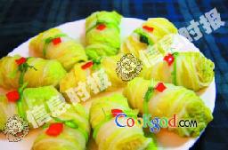 材料:大白菜(1棵)、猪绞肉(330克)、香菜(10棵)、红尖椒(1只)、红萝卜(1/4根)、水发干香菇(2只)、海米(10克)、葱花(1汤匙)