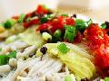 做法:1、最好提前一天将鸡胸肉或里脊肉切丝,加剩余1料拌匀...