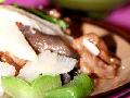6.取一锅,放入作法4的高丽菜片,再将作法5盛入锅内,最后再放上作法1的蒜苗片即可。