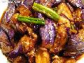 2.加工茄子.首先,在切好的茄子里加入盐,鸡精,十三香,椒盐粉拌匀,茄子外表会略微有些湿润,这时在茄子表面均匀的粘一层干淀粉,油烧7成热就可以下锅炸了.炸至焦黄,表面起焦皮即可.