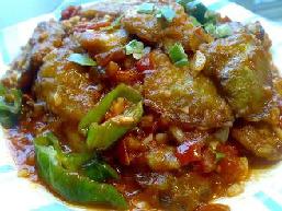 3.调味.锅内留底油,放入蒜米,剁椒酱,番茄酱各一大勺略炒,再放一个小个的番茄(切丁)翻炒,调入盐和鸡精适量,糖一大勺.熄小火,等番茄炒成糊调入水淀粉即可.加入炸好的茄子,收汁出锅.