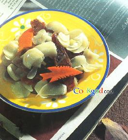 做法:1.将咸猪后腿肉放入清水中浸泡3至4小时,刮洗干净,八...