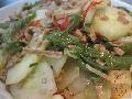 做法:1、竹节虾洗净煮熟,剥壳去肠杂切段;葱头、芹菜、青...