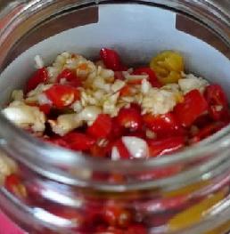 做法:1.油锅内放油略加热 2.将切好的酸辣椒和酸橄榄放入略翻...