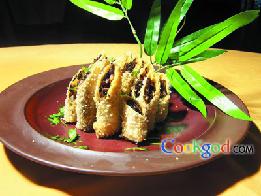 做法:1- 鱼跟虾弄碎,放盐胡椒粉咖厘粉拌均匀后塞进苏东里用...