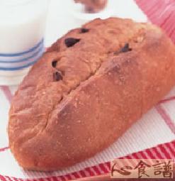 6.将松弛好的作法5以擀面棍擀开成长形,撒上各约15公克的核桃和葡萄干后捲起成橄榄形,放入烤盘中移入发酵箱,以温度38℃、溼度85%进行最后发酵约45分钟至体积膨胀为一倍大。