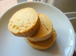 9、把冻硬的长条用刀切成厚度约0.8CM的小圆片。