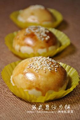 1.油皮:中筋面粉180克,低筋面粉40克,猪油100克(要溶化状态下的。如果忌口,可用黄油或植物油代替),细砂糖30克,水80克。 油酥:猪油50克(溶化状态),低筋面粉100克。 馅料:豆沙馅