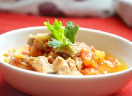 做法:1.将带骨鸡胸剁丁,加入所有腌料中腌15分钟;干辣椒段...