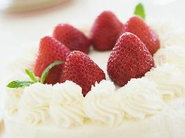 10.在蛋糕周围裱上奶油直边,上表面裱上辐射状圆形图案,有造型地插入草莓,即可食用。
