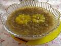 4、清汤、山海椒水、余下的精盐、鸡精同放锅内烧沸,放入菜心,起锅,注入汤盘内,撒上菊花瓣即成。