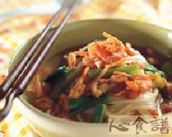做法:(1)将蕃薯去皮洗净后切成细丝,香菜洗净切末,溪虾洗净...