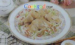 做法:1、鸡洗净后在保持微沸的水中浸约15分钟,其间将鸡提出...