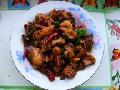做法:(1)、锅内到油,把花椒炸透。 (2)、倒入鸡、葱姜蒜...