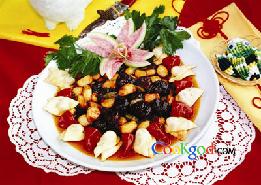 做法:1、鱼肚发透,切成片。胡萝 卜洗净,切成与鱼肚同样大...