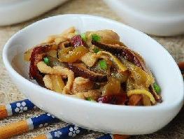 1、瘦肉洗净切成细丝;干香菇用清水泡发,去蒂挤干水,切成细丝;红枣也用清水泡发,去核切成细丝;姜去皮切成细丝。 2、茄子去头尾洗净,切成5厘米长的细条,放入沸水中汆烫1分钟,捞起沥干水。将瘦肉、香菇、红枣和姜丝置入碗内,加入1汤匙油、3汤匙蚝油、1/3汤匙白糖、1汤匙鸡粉、1/3汤匙盐、1汤匙酱油和1/2杯清水拌匀,做成古方酱料。4、将古法酱料放入焯过水的茄子条中,拌匀,或者取一深盘,以铺一层茄子条,舀入一层古方酱料的方法,将茄子条叠加成梯型。
