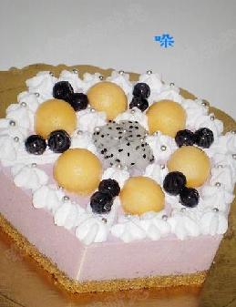 7将拌匀的蓝莓芝士糊倒入事先铺好饼底冷藏过的模具中,冷藏一晚