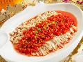 做法:斩成石榴米状;放碗中,加葱、姜汁、蟹肉、虾子、盐、...