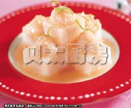 白萝卜去皮,清洗干净,切成6cm见方的块,用冰激凌勺或小勺在每块白萝卜块的中间挖出一个凹槽。