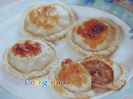 6、做好的饺子入锅蒸熟后取出,再入煎锅煎至金黄色既可。