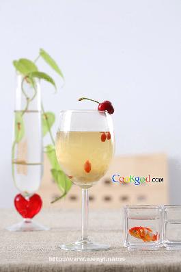 材料:干银耳5朵 马蹄(荸荠)10个 干莲子20颗 枸杞30颗 冰糖20克 清水1500ml做法:1)将银耳放入大碗,倒入冷水浸泡1小时。枸杞用冷水浸泡。2)削去马蹄的外皮,泡入清水中,再削剩余的,以免马蹄氧化变黑。3)待银耳变软后,用剪刀剪去黄色硬结部分。然后再剪成小碎块儿,越碎越好。马蹄切成5毫米大小的粒。将枸杞清洗干净备用。4)锅中加入清水,放入干莲子,银耳碎,马蹄粒,大火煮开后,调成小火,半盖盖子,炖煮40分钟。5)将枸杞倒入,继续炖5分钟,调入冰糖,搅拌至融化即可。夏季冷藏后食用,口味更好。超级?嗦:**在