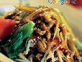 3)锅中倒入油,待油5成热时,放入干红辣椒,爆出辣椒香味后,马上放入大葱,随后倒入白菜翻炒1分钟。再依次倒入醋、酱油、糖和盐,翻炒3分钟,待白菜出汤后,淋入水淀粉,用铲子沿同一方向搅拌勾芡,最后淋入香油,翻炒一下即可。