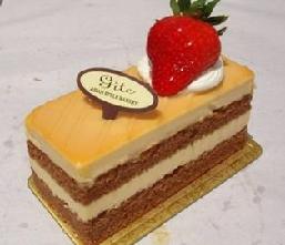10.将鲜奶油放入一个容器,用打泡器打到6分程度(用打泡器舀时奶油黏糊糊地往下掉的程度)。