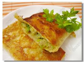 4.4放入锅里,一定要小火煎,要不然很容易就煎糊了。 煎的时候盖上盖儿闷一会儿里面更容易熟透。