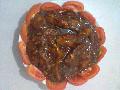 4.煲内将茄子放在豆腐上,再铺上鸡肉,汁料(除生粉水)炒匀加入煲内大火煲开,加生粉水将汁调稠,洒上葱丝即成。