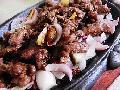 02.然后煎土豆,煎牛肉的同时把铁板放在火上烧,铁板内要放入一些植物油,铁板内的油烧热了,铁板也就烧的差不多了。把煎好的肉和土豆放下去,盖上盖子端上桌,最后淋上sauce.