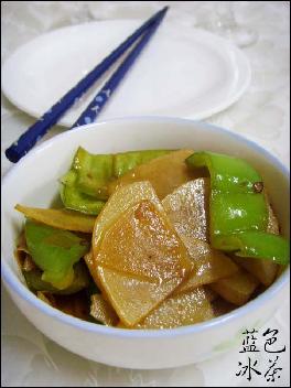 做法:1.青椒洗净切条。 2.锅中不放油,直接把青椒放入小火炒...