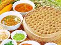 6.把醒好的面团分成4分,案板洒上干面粉,取一小分放案板上擀薄,成圆形的面皮。