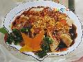 1、净鸡剁威小块放在盆中,加入料酒拌匀,腌渍1个半小时取出。将芝麻、花生米炒熟碾碎,并用白糖拌匀。