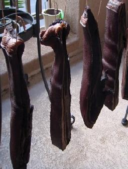 四条用韩国店买的粗海盐腌三天, 也挂起来,