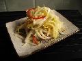 做法:1. 将鸡胸肉洗净切条状,洋葱切丝,红辣椒切斜片、巴西...