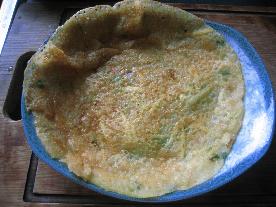 做法:(1)把水和饼粉调成面糊; (2)用易洁锅用少许油煎成薄饼...
