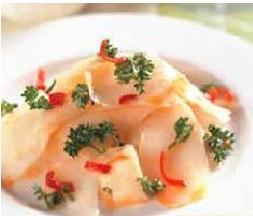 做法:1、将目鱼用刀切花刀成丝,胡萝卜去皮切丝,青红辣椒...