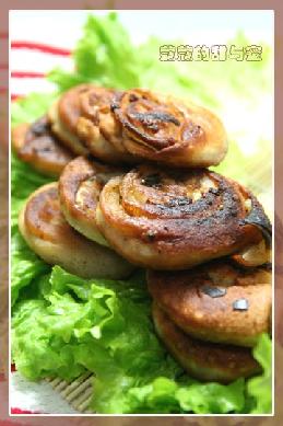 6.平底锅里放色拉油,慢慢用小火煎四五分钟至表面金黄即可。我的 这个火大了,呵呵。