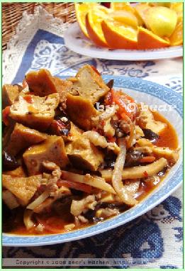 3.肉丝用生抽、老抽、水、胡椒腌一下,这样荤素搭配,不想吃肉不要也行。