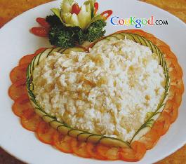 3、鸡蛋清应以中小火走油,避免蛋清不滑身和呈现蜂巢状。上碟前加入少许蛋清拌匀才取出,美观而口感嫩滑。