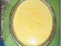 用量杯量出1枚鸡蛋蛋液的容量(约50ml),调入白砂糖,再加入相同量的鲜榨橙汁充分打匀。用细网过滤后,倒入空的橙子皮容器中。