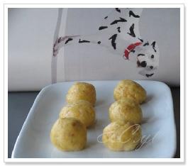 做法:1.温水面糰分割成20个小面糰。 2.将作法1每个小面糰压扁...