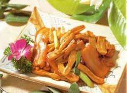 做法:1.竹笋修掉边缘粗纤维部份厚切丝,放入滚沸的水中煮熟...