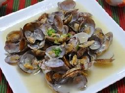 第三步: 待花蛤的贝壳都打开后,打开锅盖放调料,盐、糖适量,再放一点点水,最后撒入葱末翻炒出锅。