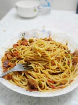 1、意大利面一小把。至于多少自己把握拉,多煮几次就熟悉了哦