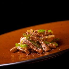 牛肉横着他的纹理切成0.8厘米左右的片,然后用擀面杖怕打松软,最后切成0.8厘米左右的条。
