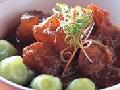 做法:(1)把茄子洗净,对剖之后切成条状,用热油焖熟,捞起待...